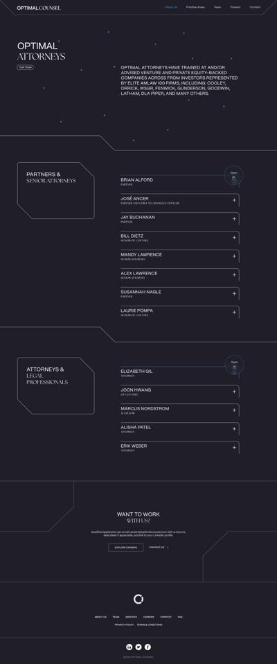 As a Founding Senior Attorney at Optimal Counsel LLP, Alex is part of a firm that specializes in representing venture-backed emerging technology and CPG companies.1 The firm has a national presence, with particular focus on tech ecosystems in Austin, Denver, NYC, and California.1