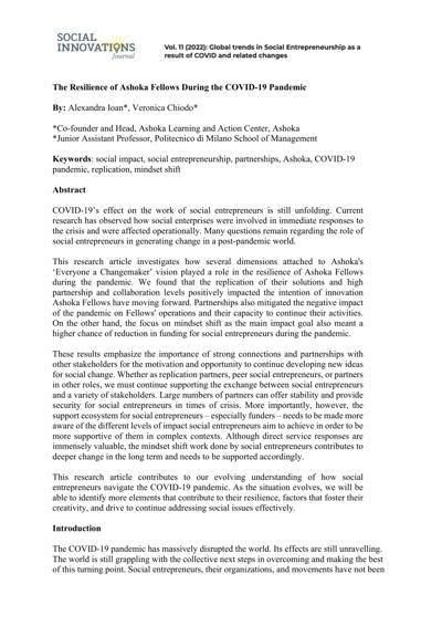 Ioan's work is particularly relevant in understanding how social entrepreneurs adapt and thrive amidst challenges, such as those posed by the COVID-19 pandemic. Her research highlights the resilience of Ashoka Fellows and their innovative responses to crises.36