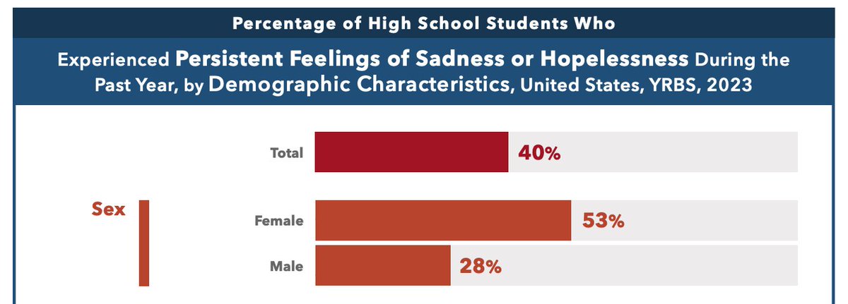 53% of high school girls are persistently sad or feel hopeless