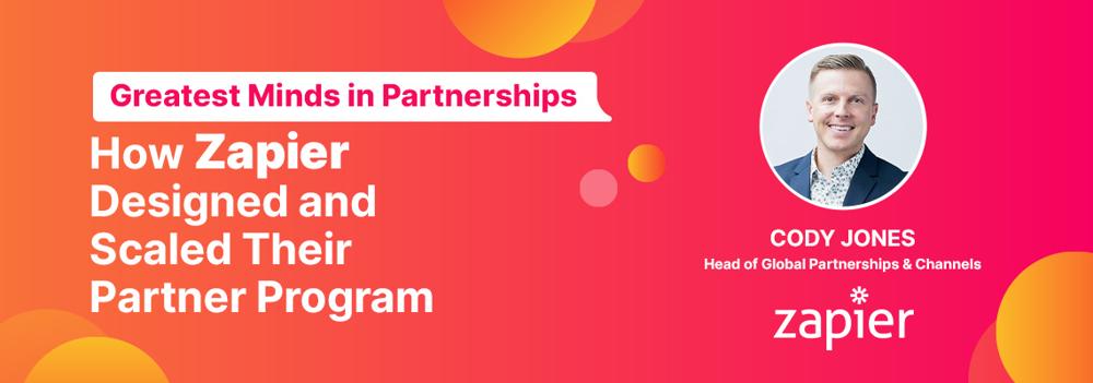Cody Jones was the Global Head of Partnerships & Channels at Zapier, a role he held for approximately 6 years until October 2022.4 During his tenure, he was responsible for designing and growing Zapier's partner programs to increase overall customer acquisition.1 Under his leadership, Zapier's partner ecosystem grew from 800 to over 4,000 app partners in less than 5 years.1