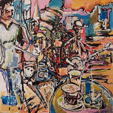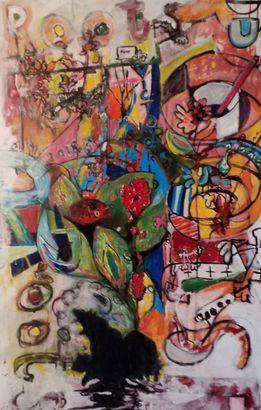 Grudniski's work is characterized by bold narrative paintings that use bright colors and scribbled lines to tell stories.5 He is known for his creative approach, particularly in his project 'My Art Information Systems A Representation Of Inner City Culture' at Grudart.