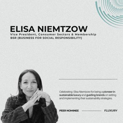 Elisa Niemtzow is a prominent figure in sustainable business, currently serving as the Vice President of Consumer Sectors & Membership at BSR (Business for Social Responsibility).1 She is a member of BSR's executive leadership team, contributing to the organization's $40 million operating budget and 300+ company mission-driven structure.2