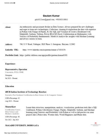 Gautam Kumar is a Senior Data Scientist currently working at Molex.12 He previously worked at SkyPoint Cloud and has experience with technologies such as PySpark, Python, Azure Databricks, Azure Functions, and Azure Data Factory.1