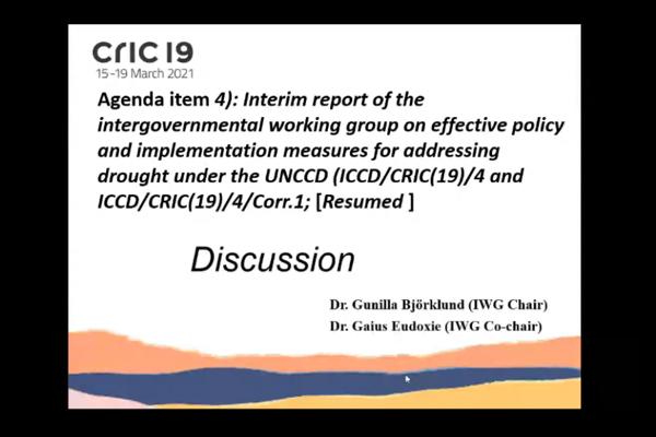 Chair person of the International Working Group on Drought at UN CCD