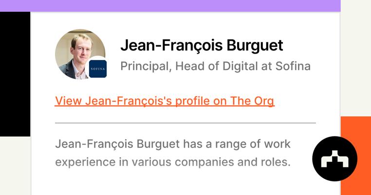 Jean-François Burguet is a Principal and Head of Digital at Sofina, a European family-controlled investment company listed on Euronext Brussels.1 He has been with Sofina since 2013, taking on the role of Principal and Head of Digital.1
