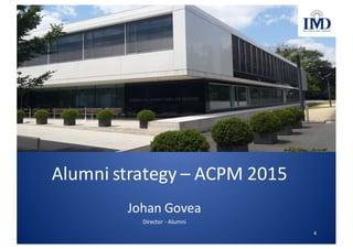 Johan Govea is the Director of Alumni at IMD Business School, located in Lausanne, Switzerland. He plays a significant role in fostering an entrepreneurial ecosystem within the school, particularly through initiatives like the Alumni Community for Entrepreneurship (ACE). This community aims to connect alumni interested in entrepreneurship and innovation, facilitating networking and funding opportunities for startups and business projects.12