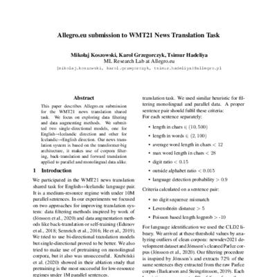 Grzegorczyk has also contributed to academic research, with publications in machine translation and natural language processing. He was part of the team that submitted Allegro's entry to the WMT21 news translation task.45