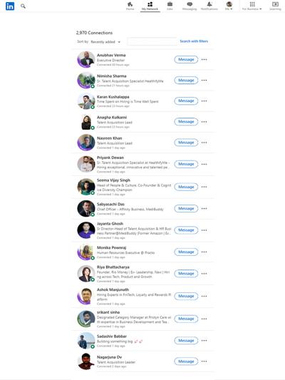 - Home Feed: Displays updates about your network including job changes, news mentions, and birthdays