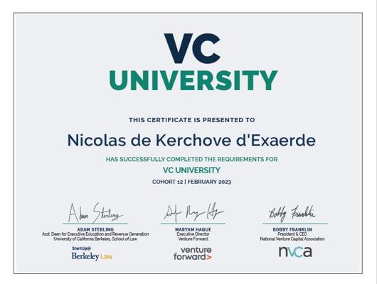 In 2023, Nicolas completed a program at VC University, an online course in venture capital, demonstrating his commitment to expanding his knowledge in the investment and startup ecosystem.2 This education complements his practical experience in business development and entrepreneurship.