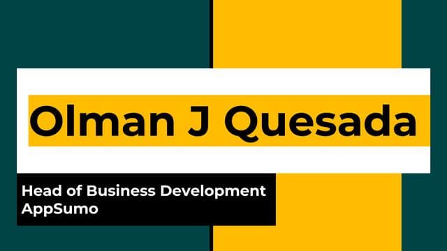 Olman J Quesada is the Head of Revenue at AppSumo, a digital marketplace for entrepreneurs.12 He has been with the company since February 2016, starting as a Business Development Manager and progressing through various roles.2 His career at AppSumo includes: