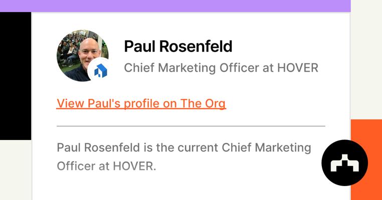 Paul Rosenfeld is the Chief Marketing Officer at HOVER Inc., a position he has held since June 2022.2 He is a seasoned marketing executive with extensive experience in both startups and large public companies.2