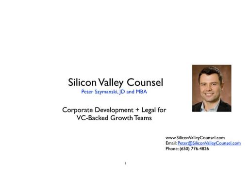 Peter Szymanski is the Founder of Silicon Valley Counsel, a law firm providing business advice and legal counsel for startups and growth companies in the San Francisco Bay Area. Some key facts about him: