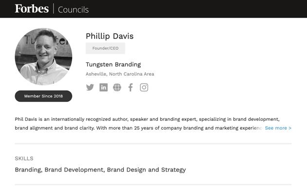 Phillip Davis is the founder and President of Tungsten Branding, a company naming and branding agency based in Brevard, North Carolina.4 With over 25 years of experience in brand name development, Davis is recognized as one of the world's most quoted company naming experts.2
