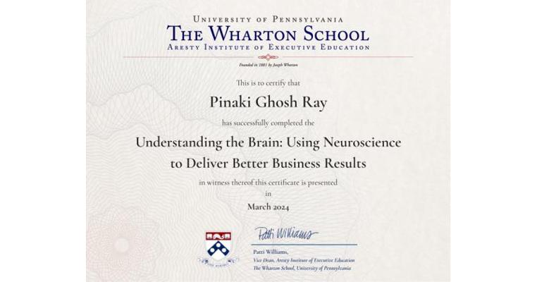 - Obtained a certification from The Wharton School in neuroscience applications for business in April 20243
