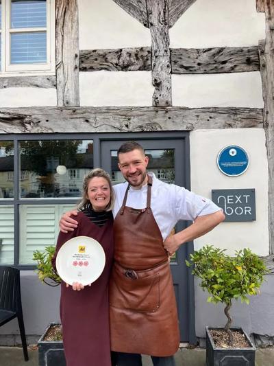 Next Door is situated in a 17th-century timber-framed building that was formerly a butcher's shop owned by three generations of Vicki's family.3 The restaurant opened in Frodsham's old butcher's shop, combining Richard's culinary expertise with Vicki's passion for wine.1