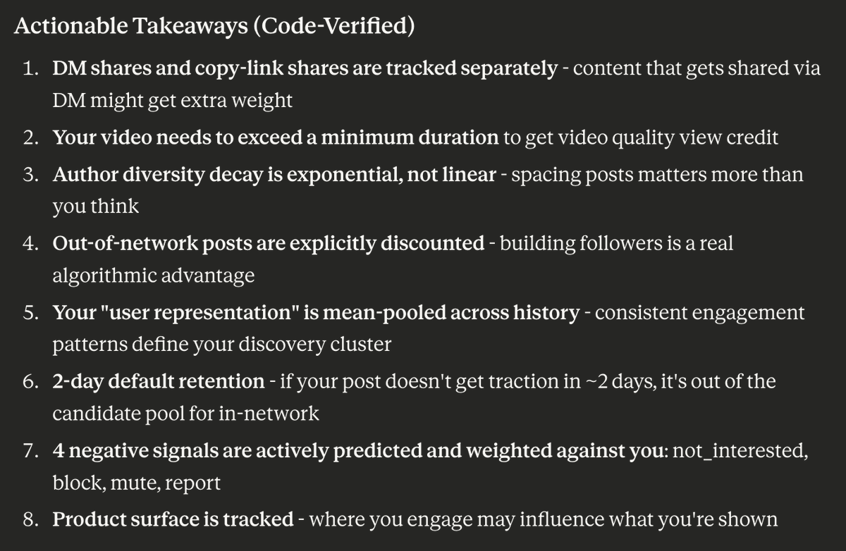 Claude - read the X algo code and give me advice for engagement-maxing: https://t.co/FwWXNxj7kb