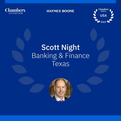 Scott Night is a finance partner at Haynes and Boone, LLP, based in their Dallas office. He specializes in representing lenders and borrowers in complex finance transactions, particularly in structuring and documenting syndicated credit facilities and multi-currency facilities. His notable experience includes handling large-scale credit facilities, such as a $3.4 billion global credit facility and a $1.75 billion equivalent facility for publicly traded real estate investment trusts (REITs) involving multiple international currencies.123
