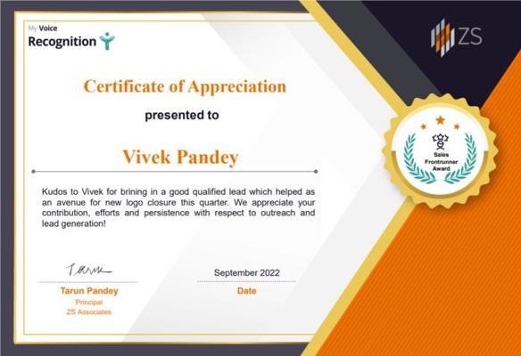 Vivek Pandey is currently the Senior Business Lead for Personalize.ai and Max.ai at ZS Associates, a global consulting firm. In this role, he is involved in the development and implementation of AI-driven solutions tailored for various industries. His professional journey at ZS has included positions such as Associate Manager in Commerce Solution Development and Associate Consultant in Business Development.13