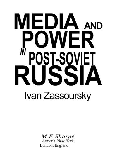 Zassoursky has made significant contributions to the study of media in post-Soviet Russia. He authored the book "Media and Power in Post-Soviet Russia," which explores: